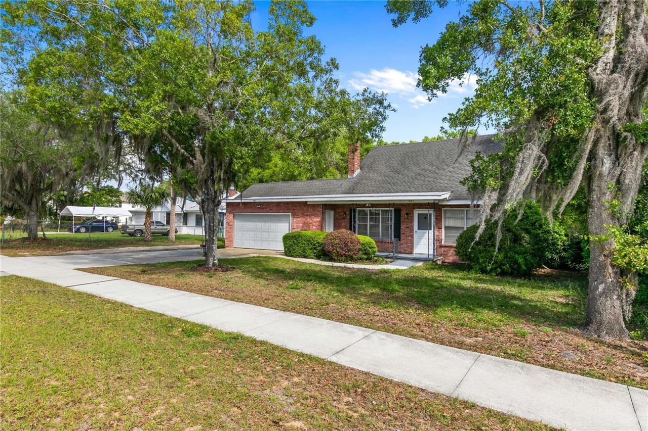 One or more photo(s) has been virtually staged. Welcome Home! Step into this charming Old Florida home with New England-style character, originally built in 1938 in what's proudly known as 'America's Hometown. This historic property has been fully renovated while preserving its timeless charm, offering modern comfort in the heart of peaceful, historic Eustis.The main house features a brand-new kitchen, updated bathrooms, new flooring, fresh paint, new walls, and new appliances throughout. Central AC and heat keep the main home comfortable year-round. The dining room includes a brand-new coffee bar with cabinet storage and wood shelves, creating a stylish and functional space for coffee, drinks, or additional serving storage.This spacious layout includes two bedrooms plus a small bonus room that can be used as an office, playroom, or small bedroom. Upstairs you'll find a large primary suite with its own bathroom and a large private rooftop terrace, creating a quiet retreat. The home also offers plenty of storage space. A detached studio (in-law suite) provides additional flexibility and includes its own kitchenette, bathroom, and AC. This space may be sub-leased upon approval, making it ideal for extended family, guests, or additional income potential. Sub-tenants are subject to a background screening.Outside, enjoy a cozy backyard perfect for relaxing or entertaining, along with a double car garage and a centralized location close to everything. The home is just a two-to-three-minute drive to highly ranked Eustis public schools and only three minutes from downtown Eustis, where you'll find a beautiful lakefront park, great restaurants, shops, and local events. Mount Dora, known for its festivals, dining, and boutique shopping, is approximately 13 minutes away. Disney parks are about 45 minutes away, Orlando International Airport is roughly 50 minutes away, and Daytona Beach is just over an hour drive.Eustis is a historic suburb of Orlando that offers the perfect balance, close enough to enjoy a busy and fun city while still providing a quiet, peaceful place to live. The town has celebrated the annual George Fest since 1902 and continues to maintain its small-town charm with modern convenience. Call today to schedule your private tour!