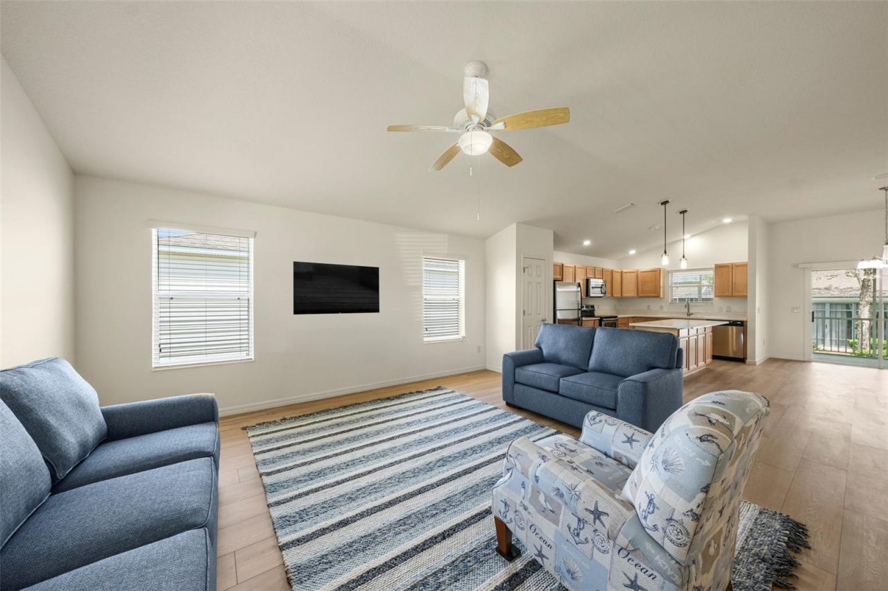 Welcome to this beautifully updated Hammock Cottage in the highly desirable Village of St. James in The Villages-an outstanding opportunity and possibly one of the best values currently available among Cottage homes. Offering 1,611 square feet, this 3-bedroom, 2-bath home features the largest floorplan in the Cottage Series with a spacious open-concept layout designed for comfortable everyday living and easy entertaining. Major improvements have already been done for you, including a BRAND NEW ROOF to be completed before closing, BRAND NEW HVAC 2025, BRAND NEW LVP FLOORING THROUGHOUT, BRAND NEW QUARTZ COUNTERTOPS IN KITCHEN AND BOTH BATHROOMS, new interior paint, water heater 2021, and brand new furniture. The open kitchen offers a large island and flows seamlessly into the dining and living areas, creating a bright and welcoming space. Enjoy relaxing on the charming front porch, and appreciate the convenience of a full 2-car garage and whole-home water softener. This home is ideally located near shopping, dining, golf, recreation, and all the lifestyle amenities that make The Villages so popular. With a low remaining bond balance of just $13,810.81 and pricing designed to move, this is a rare chance to own a move-in-ready home in an exceptional location. Annual fire district is $320.71, annual unit maintenance is $598.76, annual bond payment is $1,356.32, and monthly amenities fee is $199. Buyer's agent to verify all information. Agent/Owner.