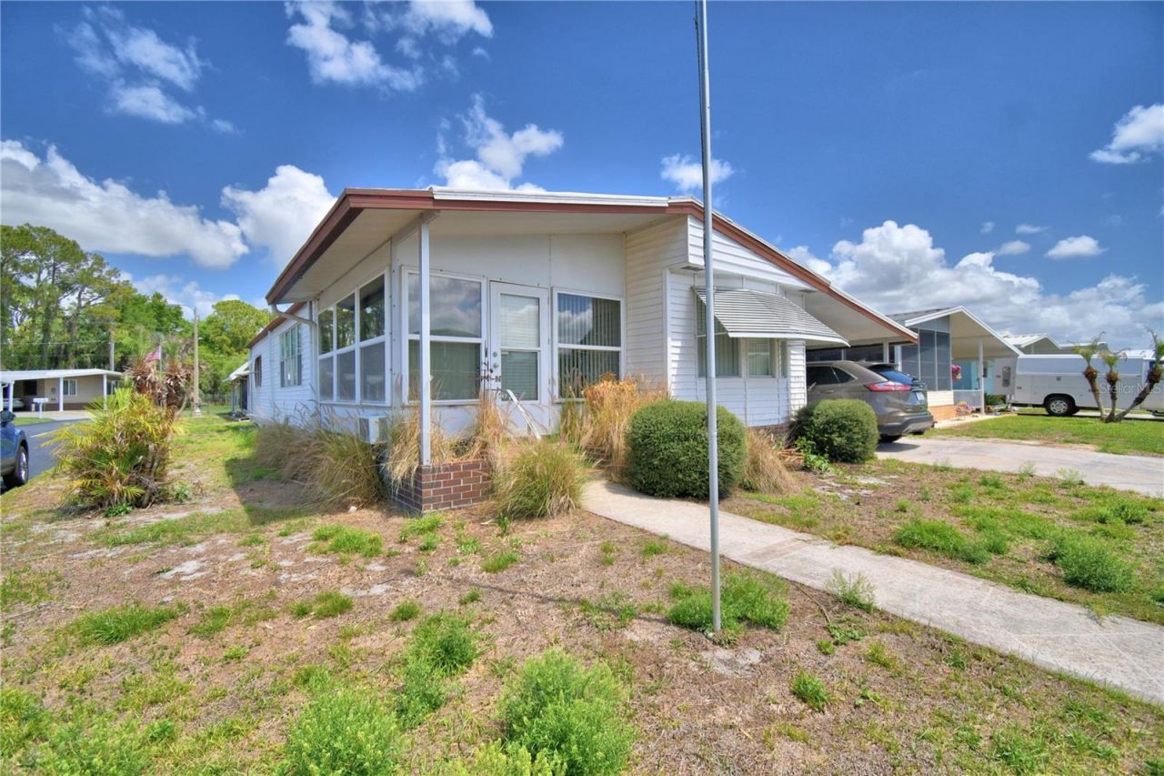 Check out this well maintained home located in Oakwood Estates, a 55+ community, located in Sunny central Florida. The home features a very open and inviting kitchen, perfect for entertaining. The cooktop and built in oven have been updated. Step into the primary bedroom to find plenty of space for a king size bed, then step into the remodeled and updated primary bathroom. The split bedroom floor plan offers privacy to guests with a bathroom conveniently located outside the door. All the flooring is a laminate with no carpeting in the home. Enjoy the peaceful screened side porch. The home is located on a corner lot with a Florida room giving views of both streets, a great place for your morning coffee. The double pane windows and window AC offers additional living space when guests arrive. Oakwood Estates offers many amenities and activities. You can be as busy as you would like or enjoy the peaceful community and watch the world go by.